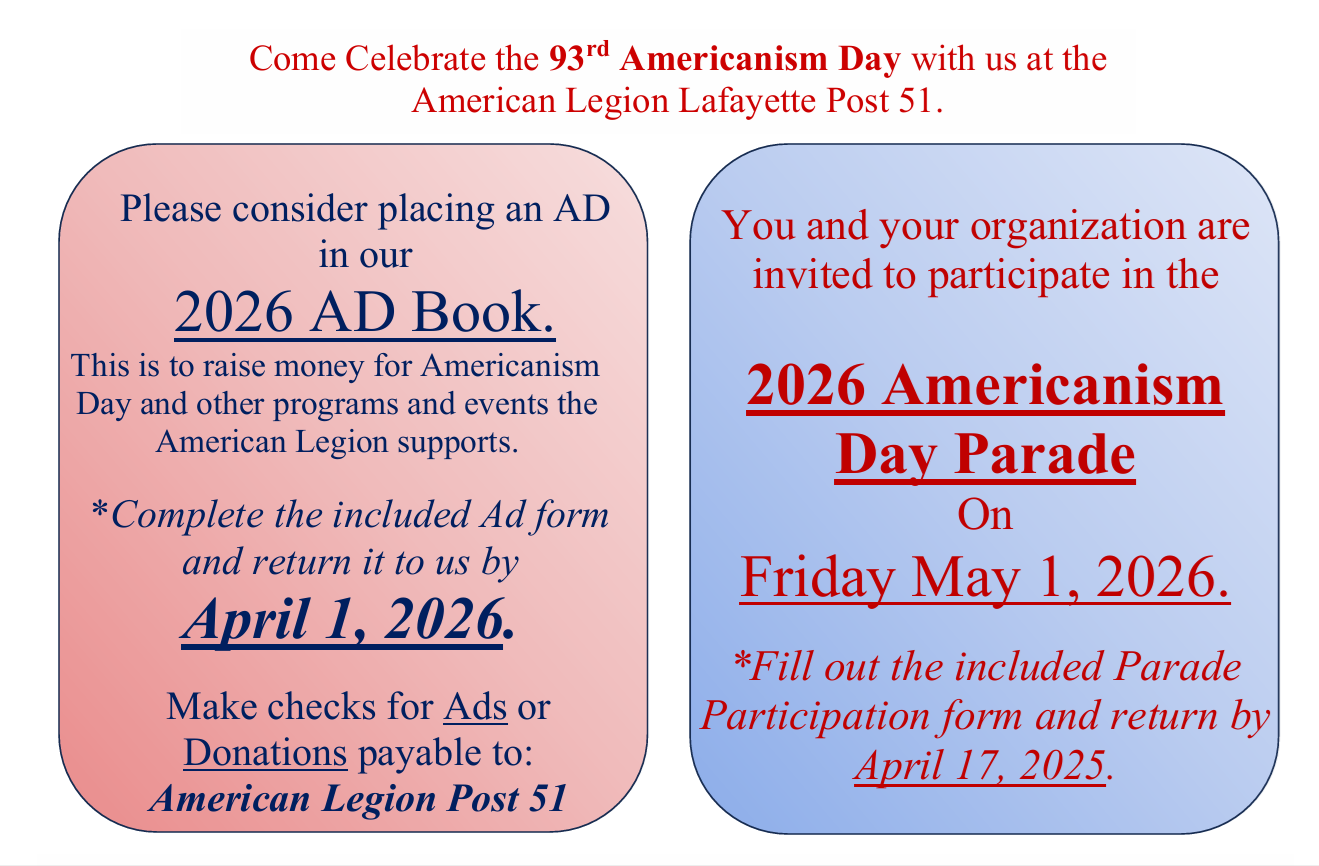 Welcome to the La Fayette American Legion Post 51.